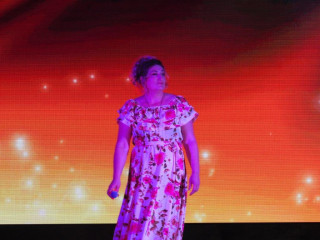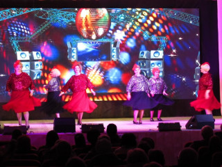 Коллектив «Возраст не помеха» вместе с ведущей открыли мероприятие ярким танцем
